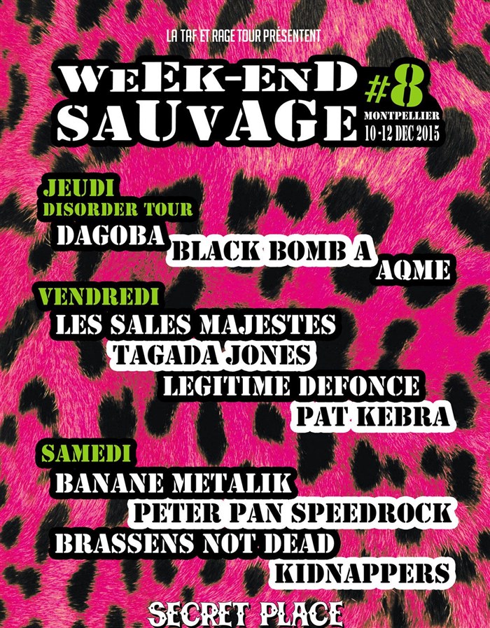 La fin de l'année signifie le grand lâché de décibels avec l'incontournable Week End Sauvage. La nouvelle édition du grand rendez-vous Punk arrive comme une bombe avec des têtes d'affiches toujours cultissimes. Cette année, le festival est partenaire de Raje Tour, un des plus grands tourneurs de Punk Rock en France, et fief des trublions de Tagada Jones. Le festival s'étoffe d'une soirée metal avec le Disorder Tour pour un week end encore plus explosif. Cet hiver encore, le Week end Sauvage va réchauffer l'atmosphère!