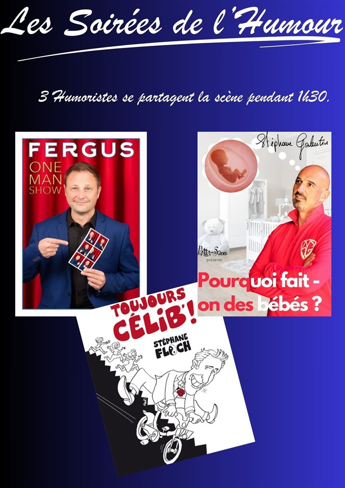 Vendredi :3 humoristes se partagent la scène pendant 1h30.