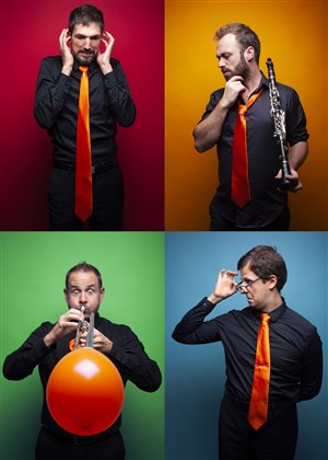 Autour d'un quatuor à vent inédit, la clarinette, la trompette, le cor et la clarinette basse, les Sourds-Doués vous embarquent dans leurs univers féériques, drôles et délirants !
