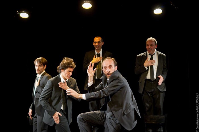" D'apparence " bien sous tous rapports ", dans leur sage et sombre costume cravate de courtier en assurances, les cinq messieurs de ce joyeux quintette a cappella parisien ont à l'évidence le goût du débordement, du loufoque et de la folie douce...Des voix puissantes, aériennes. Des voix glissant parfois en ondes fuyantes et envoûtantes à la manière des polyphonies albanaises, évoquant tantôt un matra indien, ailleurs des sons sardes, le gospel ou le kan ha diskan ( chant à danser) breton. Ils chuchotent également, et puis halètent, vocifèrent.... et même aboient ! "