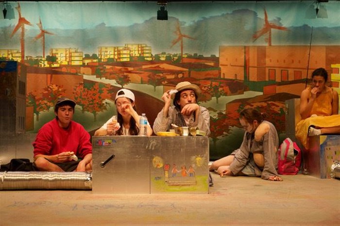 La pièce "Les Toits Bossus" est travaillée comme un point de rencontre où trois voies se croisent et entrent en discussion : la révolution, l'enfance et le théâtre.