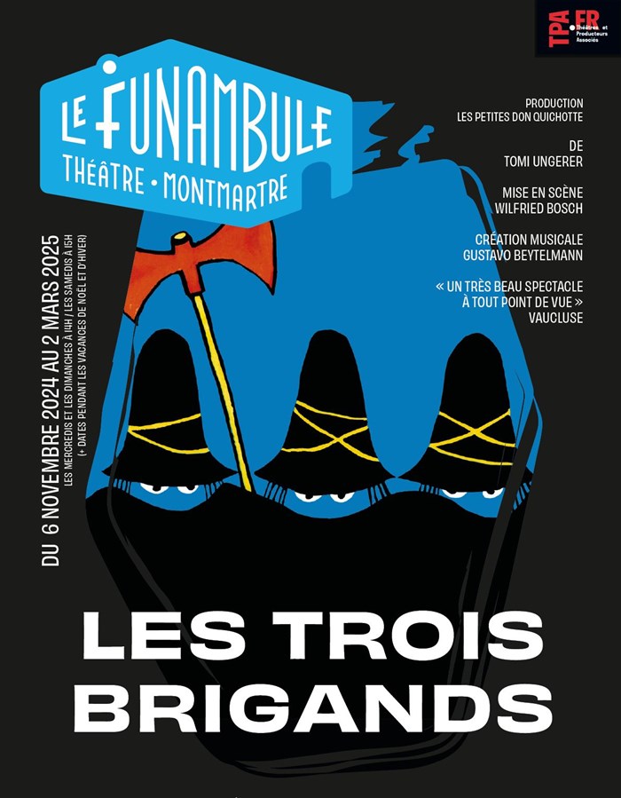 Entre tradition populaire, tango et théâtre d'objet, Les Trois Brigands est un conte musical où l'univers de Tomi Ungerer est sublimé par une composition originale de Gustavo Beytelmann pour deux voix et bandonéon.