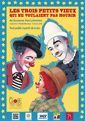 Les 3 petits vieux que nous sommes allez voir avec mes deux enfants nous ont laissé à tous les trois un souvenir impérissable (c'est le cas de le dire!)Tendres et drôles ces clowns, chacun avec son caractère, nous ont fait passer une heure sur une autre planète. Le sujet est grave certes, mais le mise en scène l'aborde avec beaucoup de légèreté. Mon garçon (4ans) un peu jeune pour tout suivre s'est laissé porté par la musique et par l'univers tout en mystère du spectacle. Ma fille de 6 ans était complètement dedans, en harmonie avec les personnages! La rencontre avec les acteurs après le spectacle est très enrichissante... Bref, un spectacle magnifique!!!