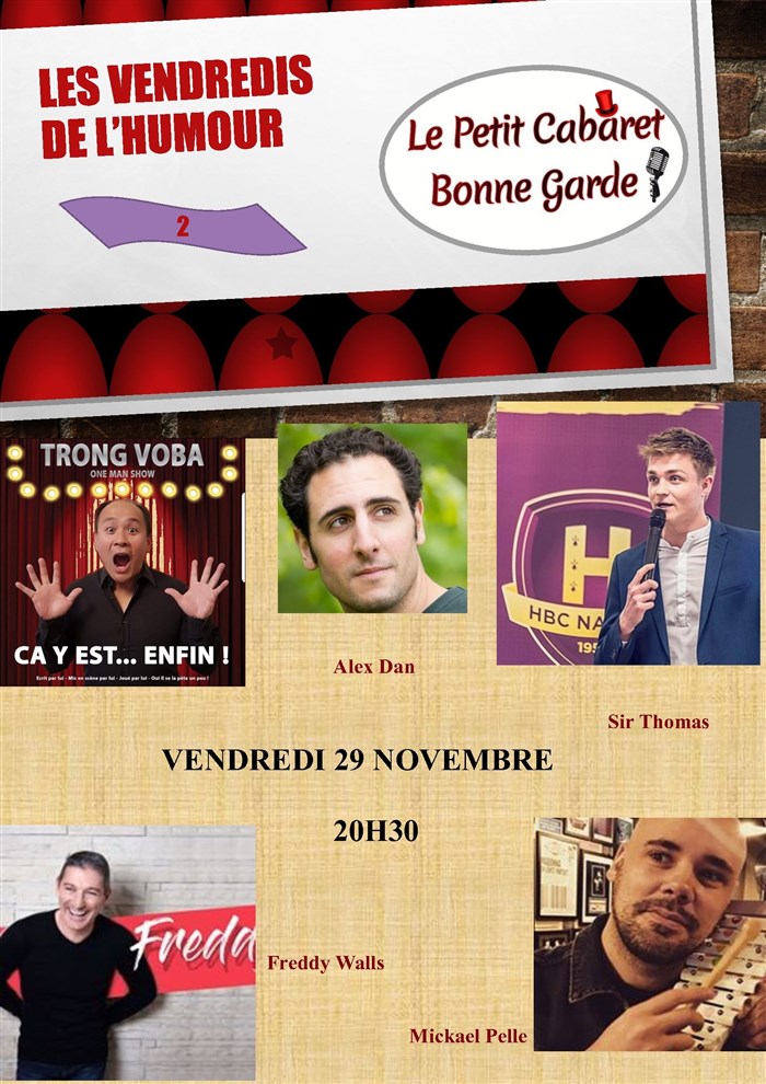 Le 4 octobre dernier a eu lieu la première des Vendredis de l'Humour au Petit Cabaret Bonne Garde, dans l'enceinte même de l'ASC Bonne garde. Vous avez pu y découvrir et applaudir Trong Voba, Les Two Pies, Romain Oliviero, Madox, Aurélien Pique et Sir Thomas.