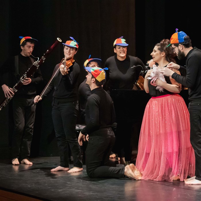 Depuis sa création, The Singing Mice défend l'opéra accessible à tous·tes, grâce à de joyeux voyages dans l'Histoire de la musique. Dans Les vies dansent, quatre chanteur·ses et trois instrumentalistes incarnent un groupe d'ami·es, de l'enfance à l'âge adulte. La playlist de leur vie ? Des airs de toutes les époques et de tous les genres. Du pianiste à la soprane en passant par le bassoniste, ils et elles interprètent une galerie de personnages qui au fil des chansons empruntent des voies différentes, mais sont rassemblés par le désir d'aimer et d'être aimés.