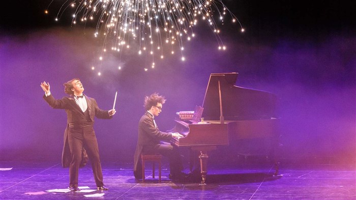 À quatre mains expertes et espiègles, Les Virtuoses déchaînent le classique avec une délicieuse extravagance, s'amusent avec Vivaldi, Mozart et bien d'autres... Mais le duo ne joue pas seulement avec la musique, il la sublime d'une magie extraordinaire. Et, du bout des doigts, emmène les spectateurs dans une rêverie fantastique. Une lumière qui joue la diva et virevolte dans les airs, des notes qui s'envolent dans un battement d'ailes de colombe...