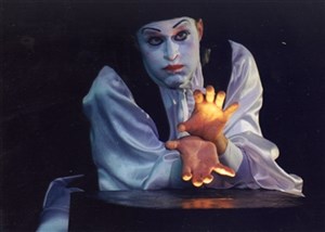 Frédéric Herrera (ancien élève du mime Marceau) habillé en costume de Pierrot lunaire incarne à tour de rôle tous les personnages de cette histoire.