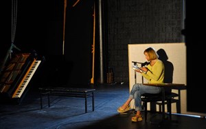 Le dispositif scénique est simple : une femme est assise dans un coin et lit, on dirait presque qu'elle vient de recevoir ces pages qui se déversent comme des mots d'amour.