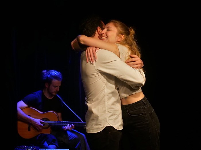 Sur scène, deux comédiens, une femme et un homme, accompagnés d'un musicien, mêlent humour, émotions et poésie pour une soirée pleine de surprises !