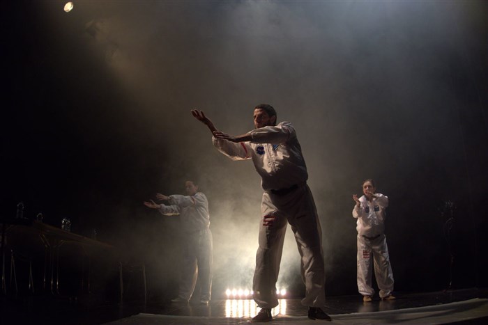 Des anecdotes et des histoires contemporaines sur nos failles humaines, nos difficultés pour vivre ensemble, pour communiquer, se font écho tout au long de la pièce.