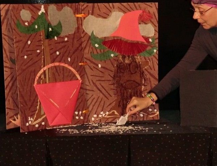 La conteuse Evelyne Nouaille a choisi l'univers du théâtre d'objets pour transmettre aux tout petits cette adaptation de " La Moufle ", conte traditionnel russe.