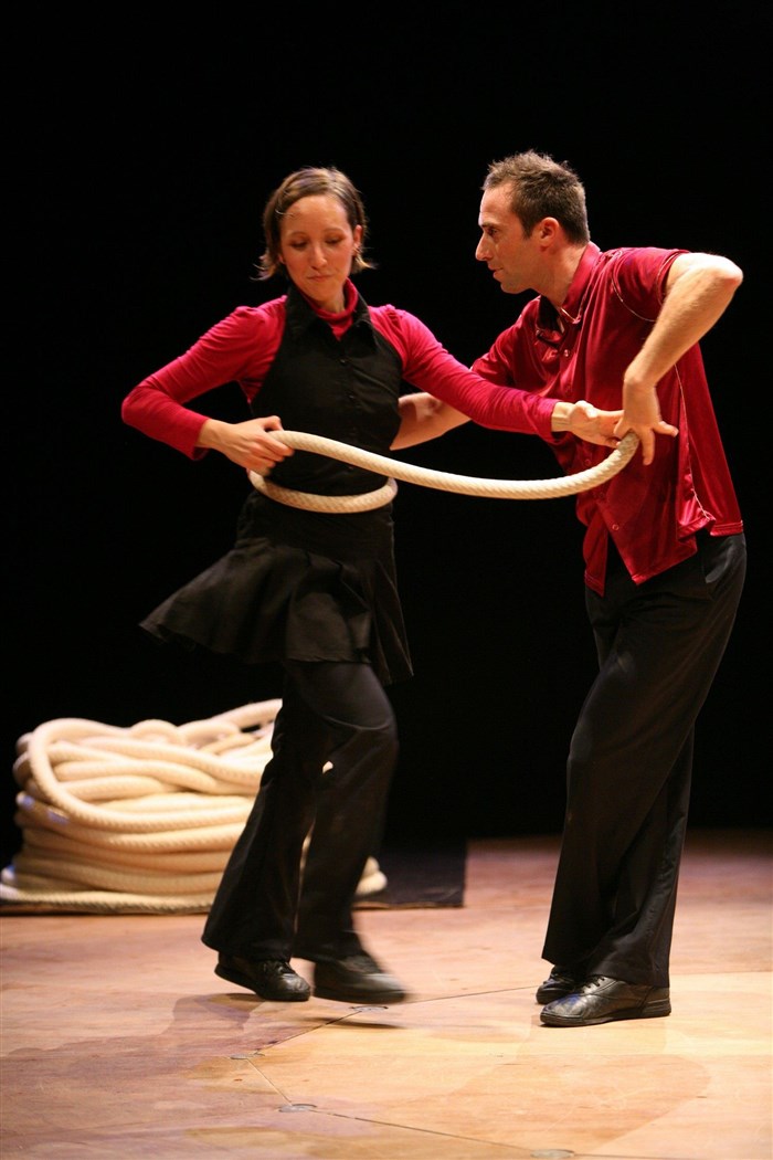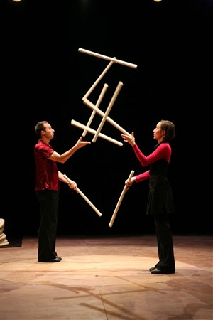 Ils inventent un langage sur le fil et drôle, mêlant la manipulation d'objets, le jonglage et la danse.