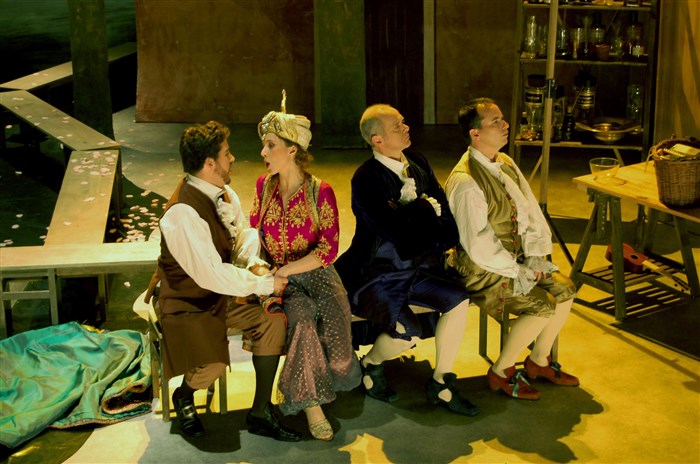 Décor superbe, comme la mise en scène et les voix. La taille de la salle rapproche les spectateurs des chanteurs et de l'orchestre et le charme opère. Un bémol cependant : pourquoi avoir fait ce choix pour la traduction ? Il est écrit sur le programme que c'est pour que le spectateur ait l'impression de comprendre l'italien. Quel mépris pour l'italien que de le transformer en mauvais français (et mépris aussi pour la langue française) avec souvent des faux amis, et des mots sans aucun sens en français. Un exemple : Grilletta dit "Sono ferita" ce qui signifie "Je suis blessée" et cela devient "Je suis ferie". Ce choix de non traduction n'apporte rien, au contraire il distrait l'oeil de ce qui se passe sur scène et qui est de loin le plus important. Je n'ai malgré tout pas boudé mon plaisir.