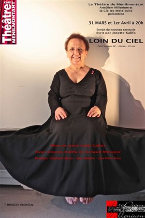 Avis aux spectateurs : Lorsque Benjamin Danet, en accord avec le Théâtre de Ménilmontant nous a proposé ces deux dates, il nous a paru évident que nous tenions là une occasion formidable de donner de la visibilité à notre travail. C'est pourquoi nous avons proposé de faire une présentation de 35MN qui constitue une étape de travail, en amont de la création du spectacle Loin du ciel écrit et interprété par Josette Kalifa, mis en scène par Lydie Callier.
