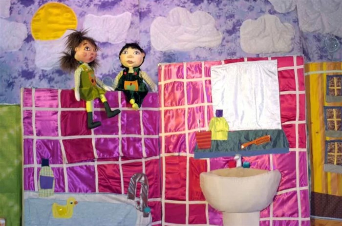 Son premier voyage la conduit dans la salle de bain, où elle va faire la connaissance des deux enfants de la maison, Tom et Ella. C'est amusant le bain, c'est plein de bulles et de chansons.