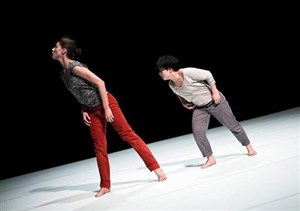 Dans Iskio en revanche, la rencontre entre les deux danseurs passe par des appuis ; ce n'est pas le souffle invisible, comme dans Loom, mais la force du contact d'un corps à l'autre qui actionne le mouvement.