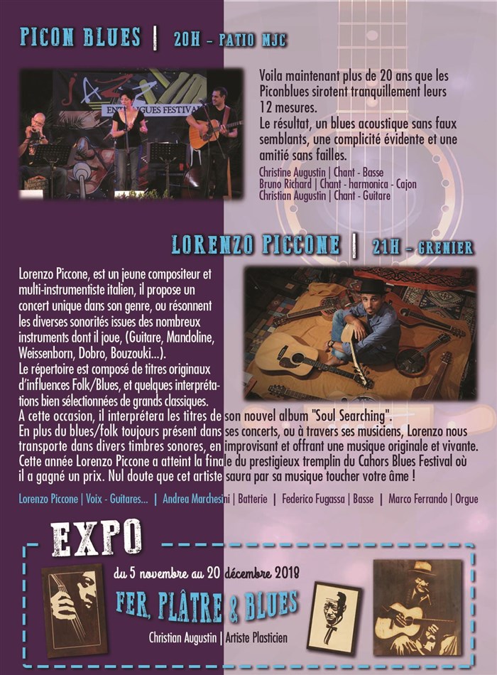 Cette année Lorenzo Piccone a atteint la finale du prestigieux tremplin du Cahors Blues Festival où il a gagné un prix. Nul doute que cet artiste saura par sa musique toucher votre âme !