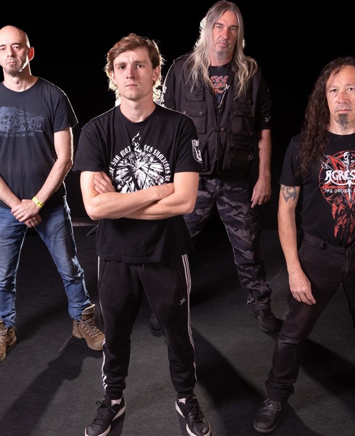 Un split LP des protagonistes de cette soirée qui sera et restera historique : "Licensed to thrash", sorti en 1987. Ils se retrouvent ce soir au Hangar, pour rejouer la partition. Moins de cheveux peut-être qu'à l'époque mais toujours autant de headbanging.