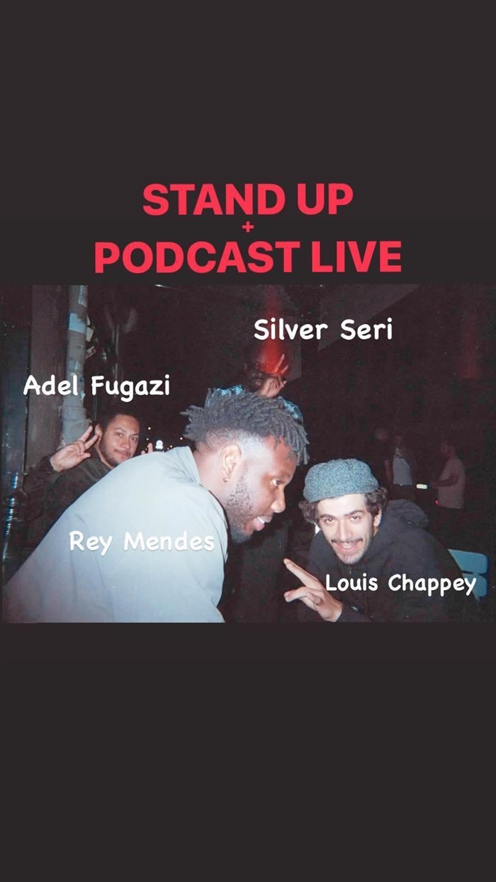 Louis Chappey invite ses amis pour une soirée de stand up suivie d'une conversation avec les hilarants Rey Mendes, Adel Fugazi et Silver Seri