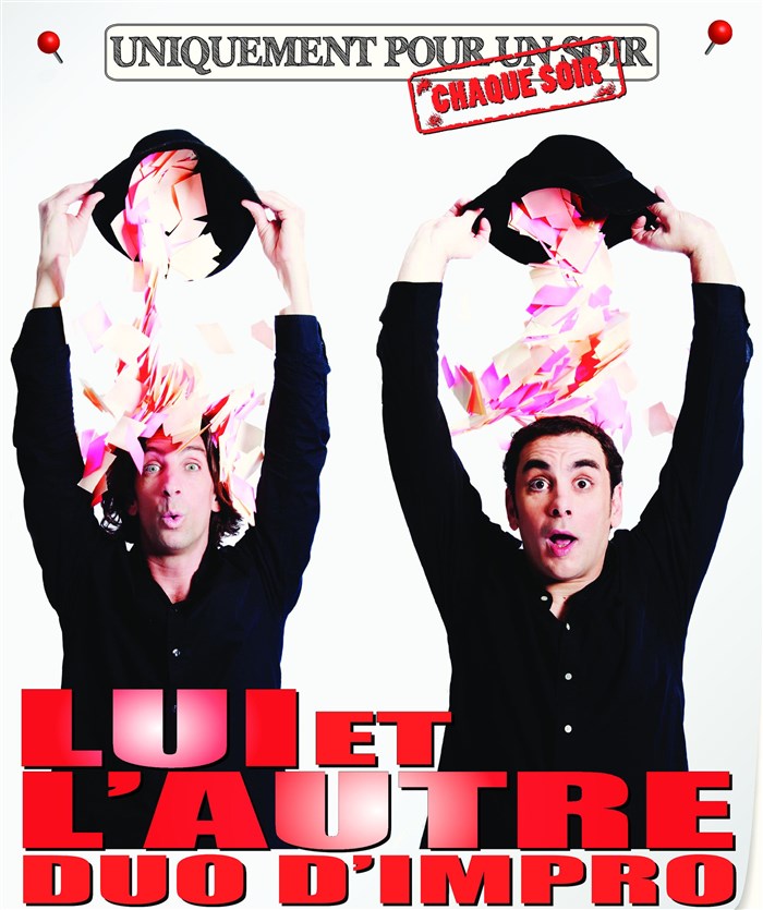 Le principe est simple. Nous vous demanderons avant le spectacle d'écrire un thème, une idée, une phrase sur laquelle vous aimeriez qu'ils improvisent. Des contraintes seront même rajoutées afin de leur rendre la tache un peu plus compliqué, mais au final, vous serez véritablement surpris par la complémentarité de ces deux comédiens, leur sens de la répartie et leur énergie littéralement revitalisente !!!