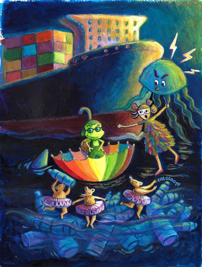 De la Seine à l'océan, ses aventures la mèneront à croiser un requin, à traverser le tristement célèbre 7e continent de plastique, et à réaliser à quel point la pollution plastique est une catastrophe écologique pour notre belle planète.