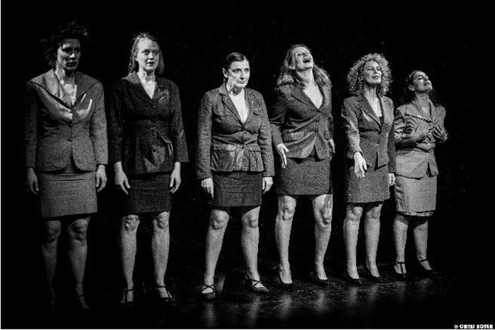 Six actrices " s'explosent " face au public. Une mort publique et théâtrale.