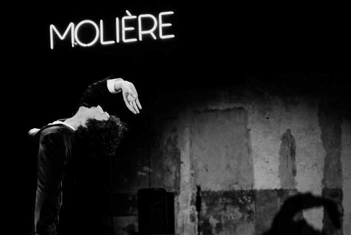 Méli-Mélo Oratoire Librement Inspiré d'Errances dans le Répertoire de l'Eponyme a pour astucieux acronyme MOLIERE. Et c'est tout en astuces, justement, que ce spectacle traverse sa vie à cheval sur son oeuvre.