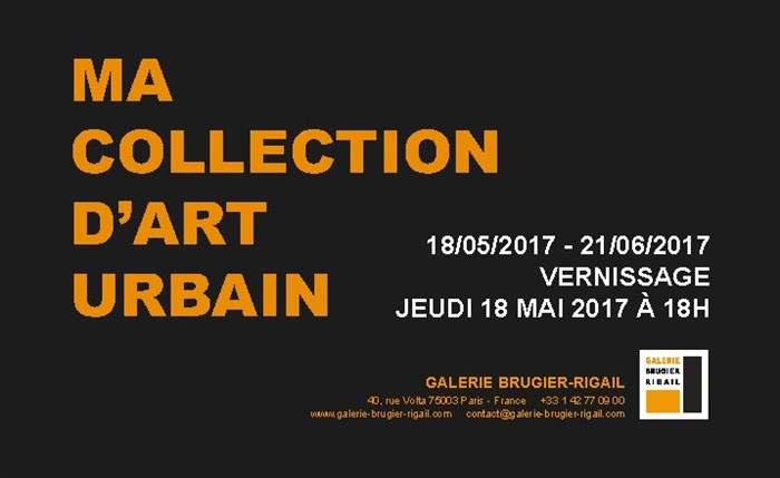 Pour répondre à cette attente, la galerie Brugier-Rigail organise du 18 mai au 6 juin 2017 l'exposition " ma collection d'art urbain ", où seront présentés les artistes les plus emblématiques de la scène urbaine française et internationale.