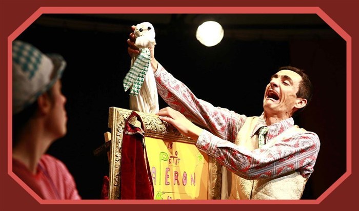 Tout y est : bruitage, musique, suspens insoutenable, rire, action et émotion. Un cadre doré, comme au théâtre, pour décor. C'est Ernest, une marionnette sensible et curieuse, qui ouvre le rideau.