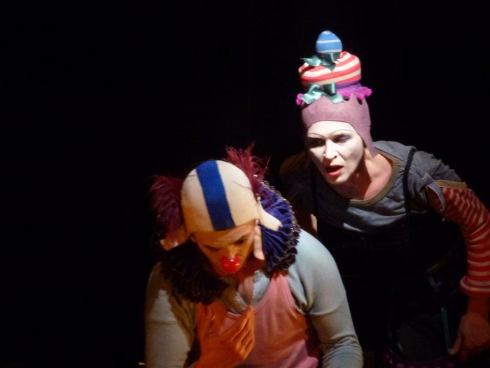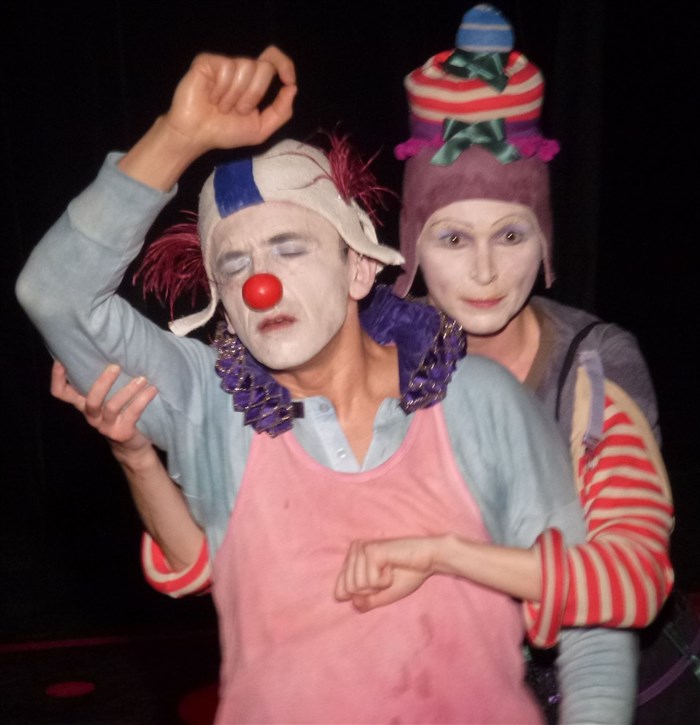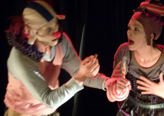 Les clowns Francis et Carpatte suivent le sombre destin des personnages. Ils sont fidèles à Shakespeare : l'histoire est jouée du début à la fin, entière et limpide. Leur regard clownesque révèle la fraîcheur du grand classique comme lavé par la pluie de l'innocence.