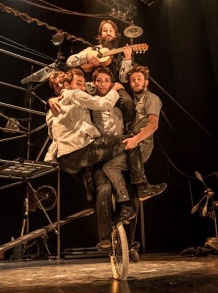 Une équipe dynamique et enthousiaste qui nous propose des acrobaties, du jonglage, cerceau, trapèze, clownerie... on est emporté par une équipe surprenante et notre attention est happée. Le rythme est enivrant!