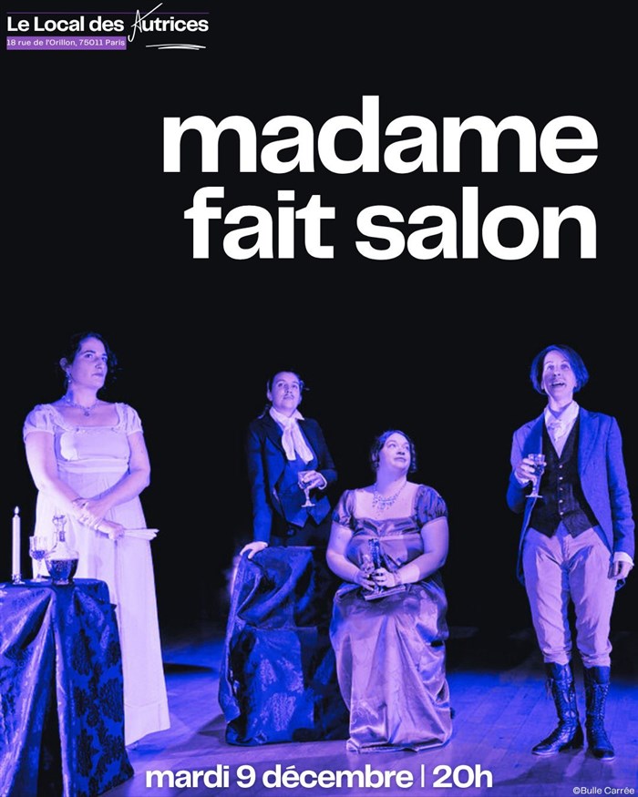Nous sommes en 1810, et le tout Paris se presse dans les salons littéraires les plus courus, où se font et se défont les réputations des artistes en vogue, où un scandale peut éclater sur un bon mot, et où la répartie et le savoir-vivre sont aussi cruciaux que respirer et boire. Au salon de Madame, le public crée les personnages et les comédiennes (qui jouent majoritairement des personnages masculins, c'est à dire les principaux convives, conformément aux usages de l'époque) improvisent alors une soirée où le verbe est roi, la rumeur court et l'honneur se défend à coup de métaphores.