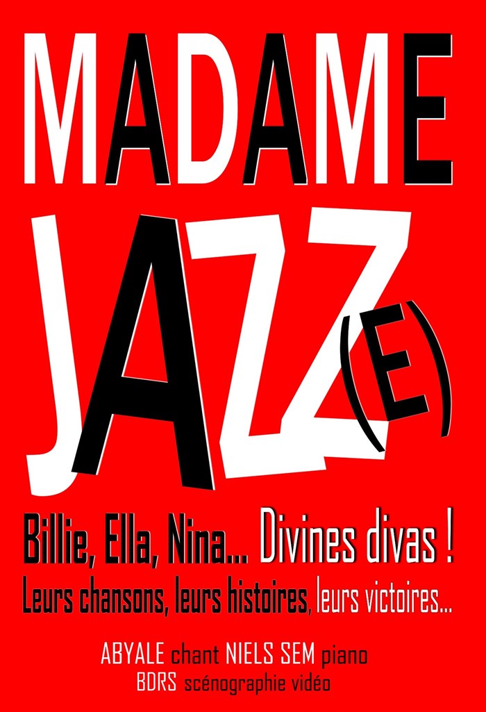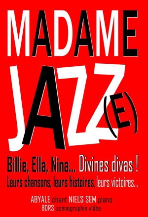 Billie Holiday, Ella Fitzgerald, Aretha Franklin, Nina Simone, Tina Turner, Joséphine Baker... La chanteuse Abyale et le pianiste arrangeur Niels Sem font revivre ces grandes voix au travers de chansons cultes qui parlent d'amour, de vie rêvée, de rupture, d'amour vache aussi... Madame Jazz(e) c'est aussi des anecdotes étonnantes, drôles ou émouvantes sur les vies de ces divas: leurs amours chaotiques, leur combat contre le racisme et le sexisme, leurs rébellions, leurs victoires! La scénographie vidéo nous rappelle les visages de ces femmes puissantes. Un spectacle qui donne une furieuse envie de chanter et de danser !