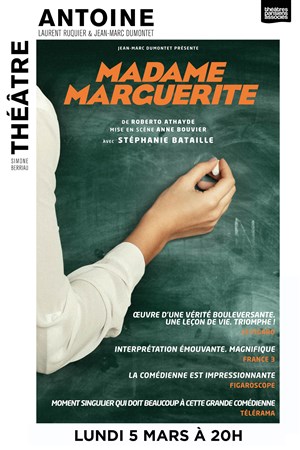 Un très beau texte, beaucoup plus profond qu'il n'y parait, servie par l'interprétation sans faille de Stéphanie Bataille, campant une Madame Marguerite sensible et autoritaire, drôle et tragique, aimante et coléreuse. Plus qu'un simple portrait d'institutrice, "Madame Marguerite" est une pièce complexe sur le pouvoir et ses travers, assez décalée, et qui ne plaira pas à tou(te)s, mais qui nous happe petit à petit...