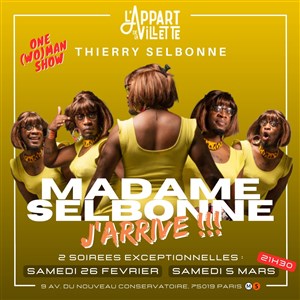 Tu veux savoir ce qu’ont pensé les spectateurs et la presse de cet événement : Madame Selbonne dans J'arrive ! - L'Appart de la Villette ? Découvre leurs avis éclairés et prépare-toi à vivre un moment d’exception à ton tour en réservant tes places !