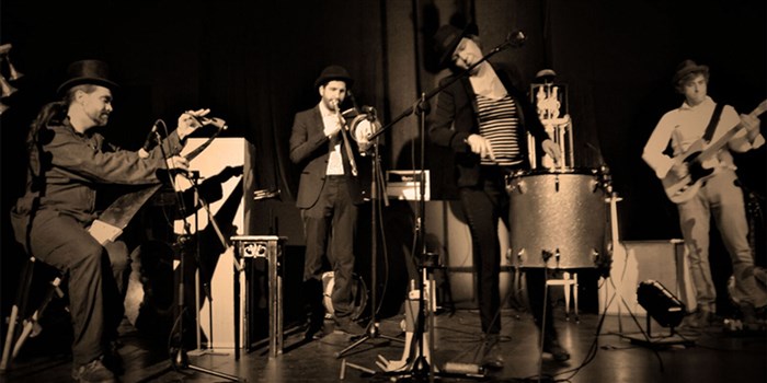 Deux musiciens malmènent leur jazz, pour en offrir les bosses et les fissures, la fragilité frémissante et la rage bouillante. A leur côté un saugrenu personnage a apporté ses lumières, ses outils, ses bidouilles, et aussi quelques instruments truculents. Il fabrique devant nous des images qui s'envolent.