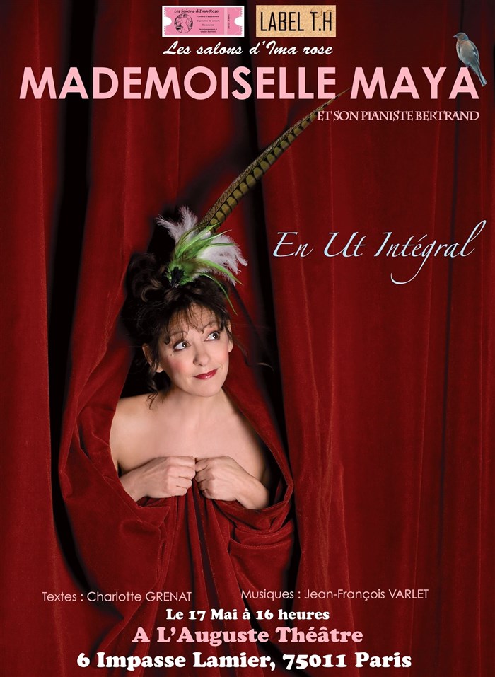 Mademoiselle Maya en Ut intégral est un spectacle très fluide qui nous plonge dans le 19ème siècle. Tout est fiction et tout s'impose à nous. Les textes chantés ou lus sont tous écrits par Charlotte Grenat. Ils regorgent de sous-entendus et font montre de sa culture littéraire lorsqu'ils sont écrits à la manière de ... Bertrand Ferrier fait plus que l'accompagner avec vigueur au piano, il est aussi spectacle. Bienheureux ceux et celles qui découvriront la tournée annoncée.