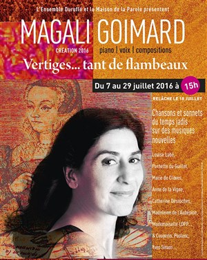 Magali Goimard à osé le pari de mettre en musique des textes de ces merveilleuses aristocrates lettrées des temps jadis. Le résultat est inégal mais très intéressant. Il y a du Barbara là-dedans et du Marie-Paule Bel pour la touche d'humour. En tous cas c'est original et à découvrir.