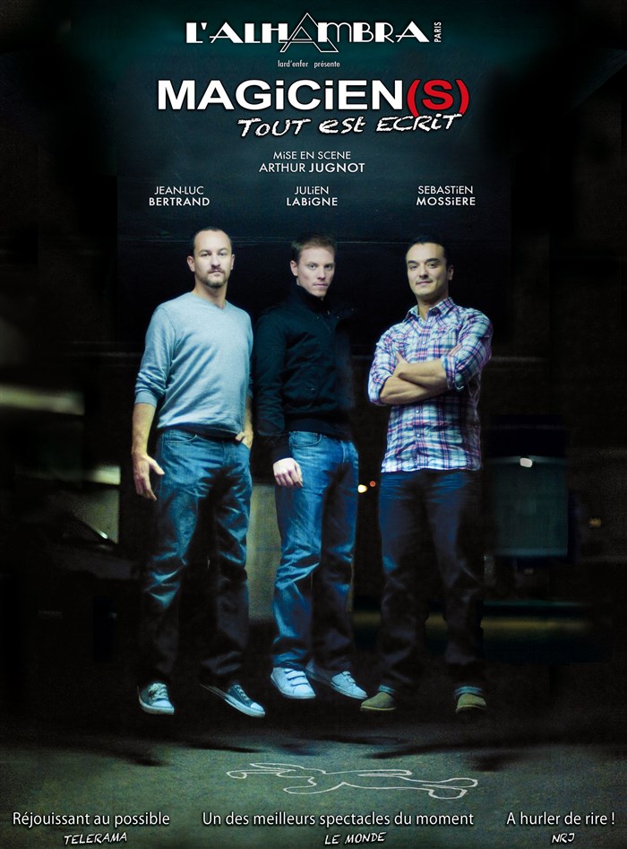 Après le succès de " MAGICIEN(S) Tout est Ecrit " Au Folies Bergère, au Splendid, au théâtre de la Renaissance et au théâtre Hébertot la saison dernière, le spectacle revient pour 15 représentations exceptionnelles du Lundi 21 Décembre 2009 au Dimanche 3 Janvier 2010 à L'Alhambra.