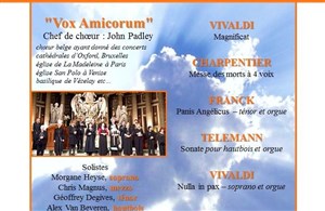 Le choeur de Chambre "Vox Amicorum" est composé en majorité de chanteurs belges et chanteurs ou musiciens français, anglais, italiens, hollandais. S'est produit en concerts dans des lieux sacrés historiques renommés en Europe : Venise, Paris, Vézelay, Bruxelles, Oxford etc.