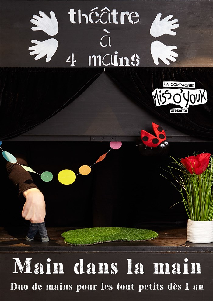 Quatre mains dansent et jouent dans un petit théâtre en bois et emmènent les enfants dans différents univers colorés, ludiques, sonores et visuels.