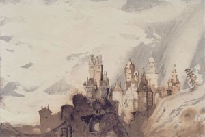 Ardent défenseur du patrimoine dès 1825, son roman le plus célèbre sur ce sujet reste bien sûr Notre-Dame de Paris, publié en 1831 où la cathédrale, monument grandiose, renvoie autant à l'architecture qu'à l'écriture. L'architecture irrigue également tout l'oeuvre graphique où châteaux, donjons, ruines, tours et forteresses noircissent très tôt carnets de croquis et dessins. L'imaginaire du poète s'y déploie aussi à travers des monuments réels ou rêvés, précis ou visionnaires, immenses ou minuscules... Tous construisent l'espace comme ils échafaudent le récit.