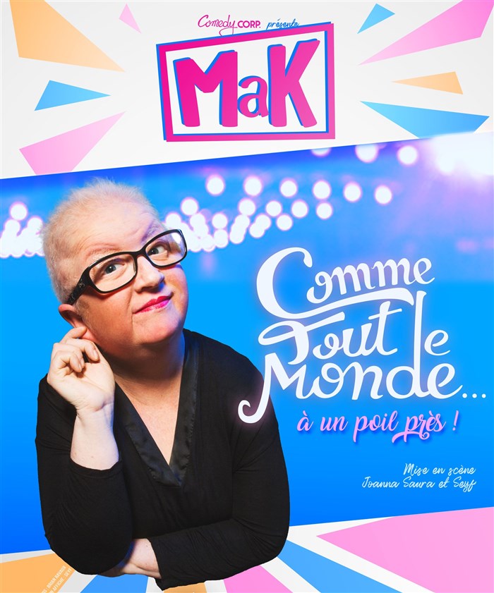 MAK est une artiste bourrée de talents avec un sens d'autodérision. Son spectacle est une pépite. Nous avons eu des fous rire pendant tout le spectacle. Une grande leçon de vie donnée par un bout de femme sans complexe. FONCEZ LA VOIR!!!!!