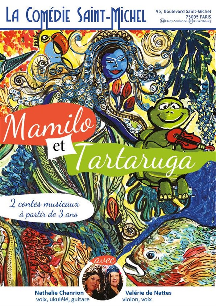 Deux comédiennes-musiciennes nous emmènent dans des contes voyageurs du Mali au Brésil. Personnages fabuleux - une sirène qui recycle les déchets laissés sur sa plage en instruments de musique, un gendarme conciliant, une tortue violoniste enfermée dans une cage et que les petits spectateurs sont invités à libérer… entre chansons, sonorités exotiques et couleurs chatoyantes, les deux artistes délivrent un spectacle interactif à la tonalité fraîche et joyeuse, avec un message écologique efficace à destination des petits comme des grands. Un très joli moment de poésie !