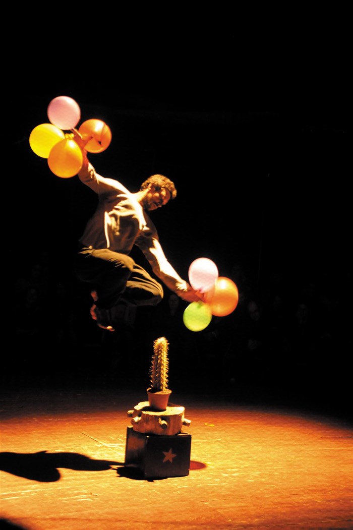 Une cavalcade, une course folle, un déchaînement de numéros : seul en scène, Sébastien Wojdan se fait tour à tour jongleur, fildefériste, saxophoniste ou danseur, et ne recule devant aucun risque.