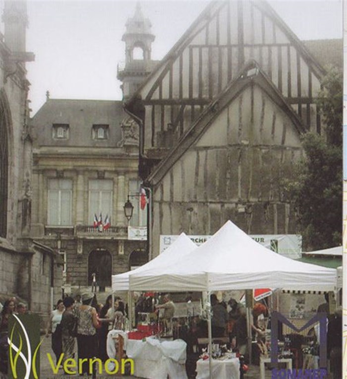 Les exposants sont installés sur une petite place au coeur du centre historique de Vernon près de la mairie et de la cathédrale. Chaque exposant présente son travail sous barnum individuel.