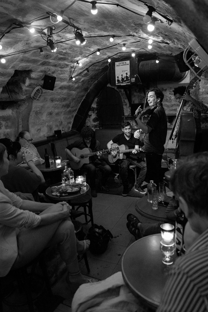 Dans une ambiance tamisée et chaleureuse vous pourrez déguster le vin maison, mais également des planches de charcuterie et fromages en écoutant du jazz manouche, du swing... Unique à Paris !