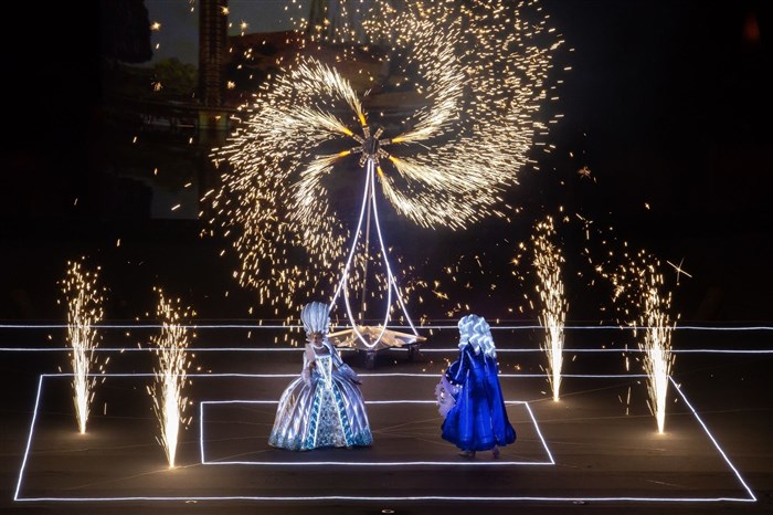 Raconté par Stéphane Bern, le destin de la dernière reine de France est rythmé par la magie des effets de pyrotechnie et de lumière, synchronisés sur les dates marquantes de sa vie : du tremblement de terre de Lisbonne la veille de sa naissance aux conquêtes Napoléoniennes, en passant par la déclaration d'indépendance américaine et la Bataille de Valmy... Durant ces quatre représentations, les artificiers vous embarquent dans un voyage à travers le temps grâce à une scénographie mêlant feux d'artifice, flammes, vidéos, personnages lumineux et porteurs de feu pour célébrer la figure historique de Marie-Antoinette. Avec la voix de Stéphane Bern !