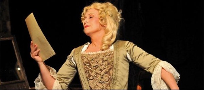 Sur scène, Marie Grudzinski, avec son charmant accent allemand, nous fait vivre en 1h15 les 50 années où la "Palatine" vivait à Versailles.