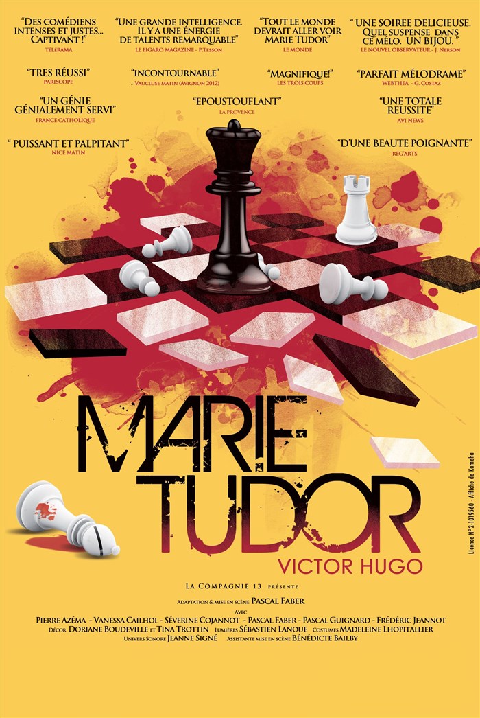 Après 8 mois de représentations au Lucernaire à Paris et un franc succès au Festival d'Avignon 2012, la compagnie 13 réinvestit le Festival d'Avignon avec Marie Tudor de Victor Hugo.